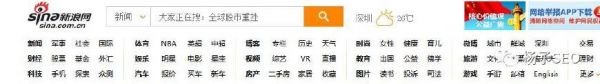 如果要问导航应该分布在哪些页面上的话,从用户的角度来审视这个问题就很不难,哪些页面在访问者访问后,可能会产生进一步了解信息的冲动,那么这些页面上就应该放置导航。简单来说,除了完全没有意义的中间过渡页面外,网站的任何页面都应该存在某种方式的导航。如下图新浪首页顶部导航: